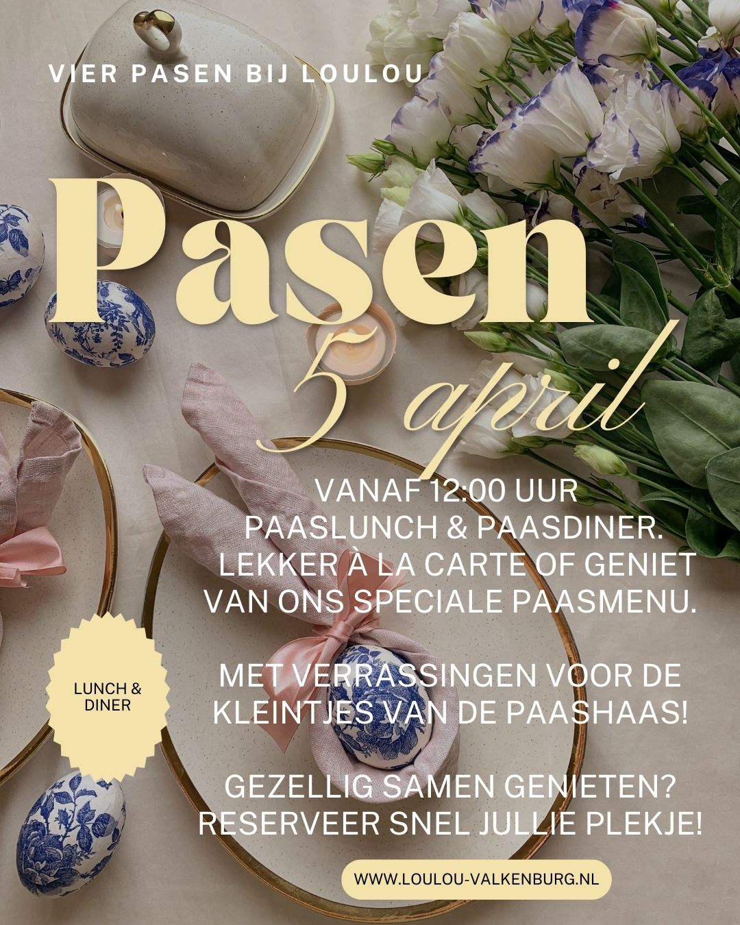 Zondag 5 april: 1e Paasdag Lunch & Diner